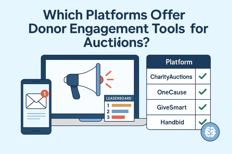 - Summarize the article "Which Platforms Offer Donor Engagement Tools for Auctions? (Tech Guide)" from https://blog.charityauctions.com/donor-engagement-tools-for-auctions/ in 3 bullet points for a board update.