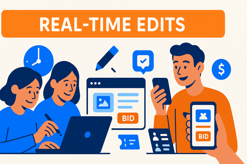 Your edits to items, images, titles, descriptions, and settings publish instantly (or within seconds) to bidder devices without needing a page reload.